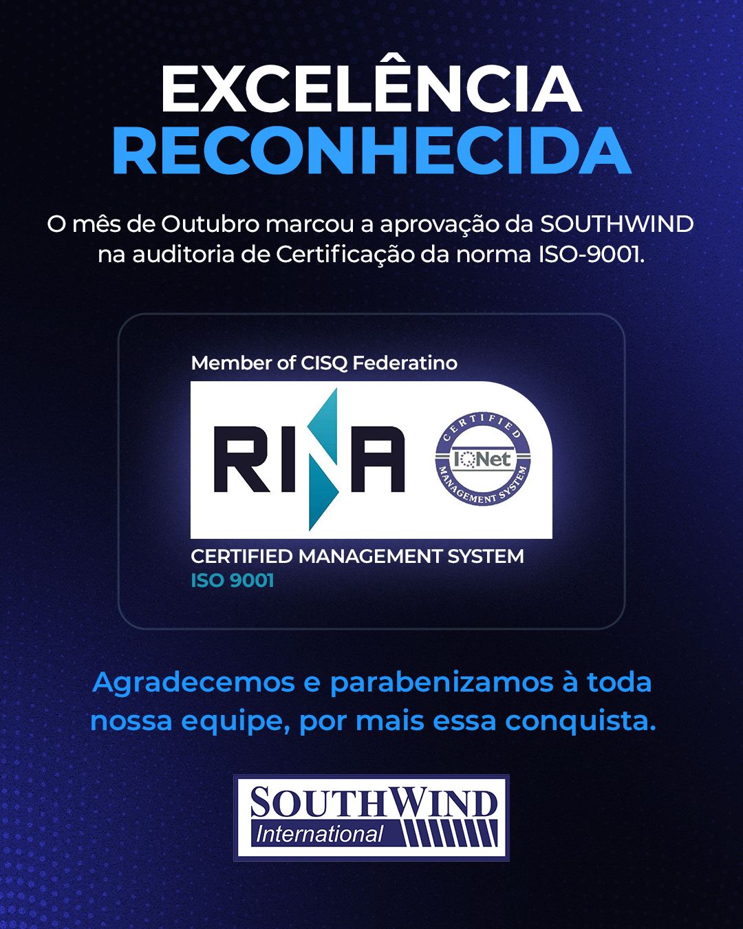 26 OUT 1 EXCELÊNCIA RECONHECIDA by Marcel Notícias off Parabenizamos toda a equipe pela conquista que reafirma o compromisso da SouthWind com a excelência e a qualidade em seus processos!